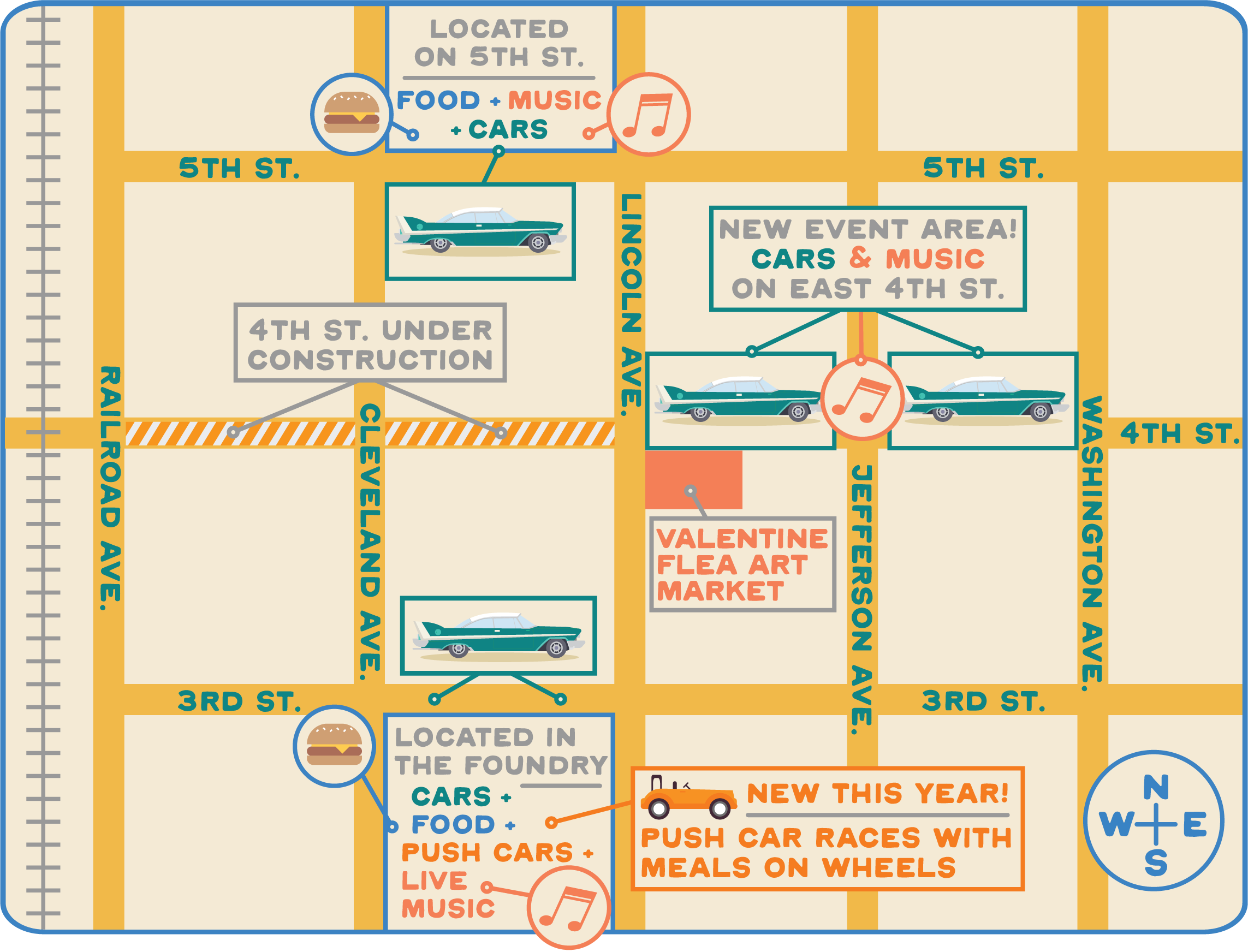NEW THIS YEAR: We've expanded our event to the "New 4th Street" between Washington and Lincoln.